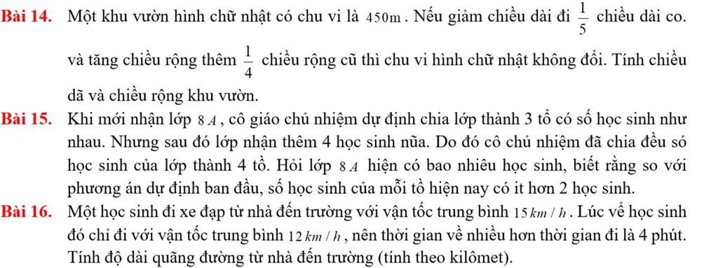 $\to$Thời gian đi là $\dfrac{S}{15}$ giờ, thời gian về là $\dfrac{S}{12}$ giờ