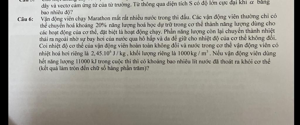 `=>` Lượng nước đã thoát ra khỏi cơ thể là: `(8800*10^3)/(2,45*10^6)=176/49 \ kg`