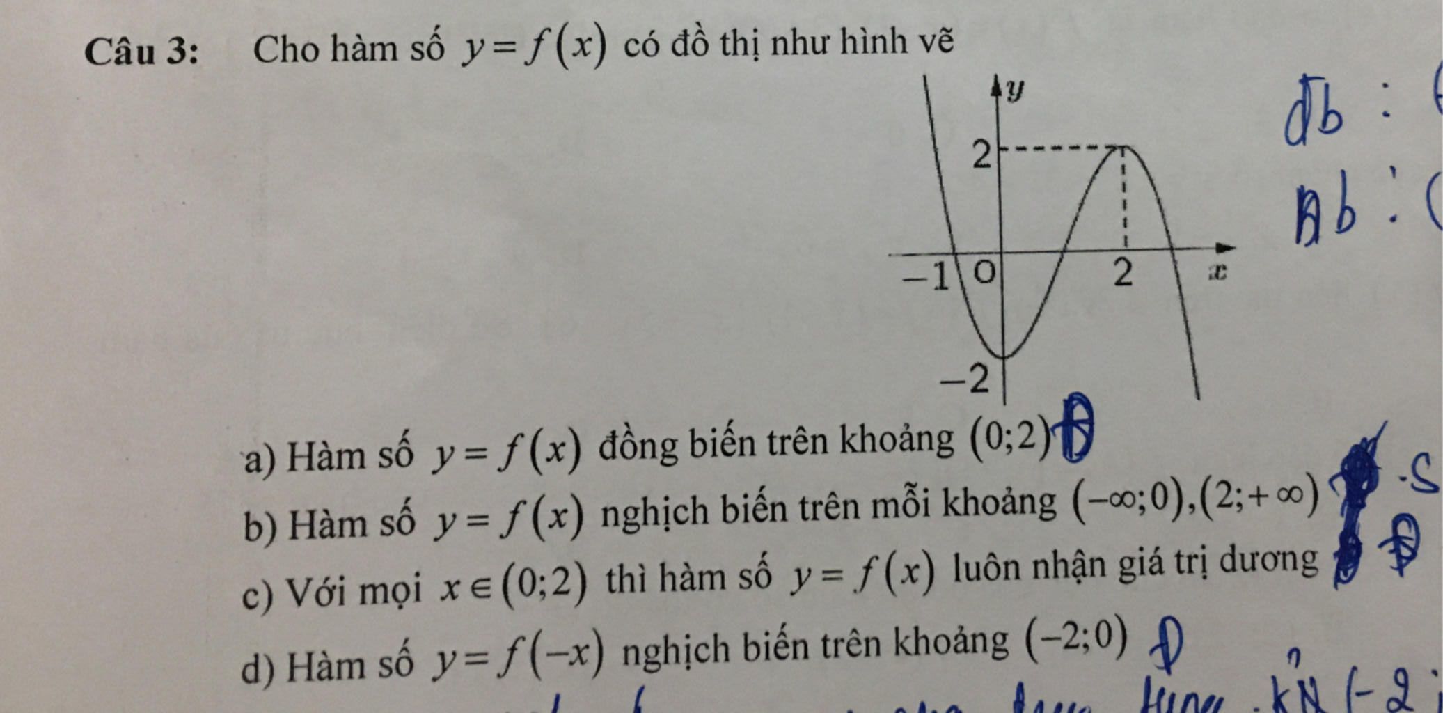 a.Từ đồ thị thấy hàm số tăng trên đoạn $(0, 2)$