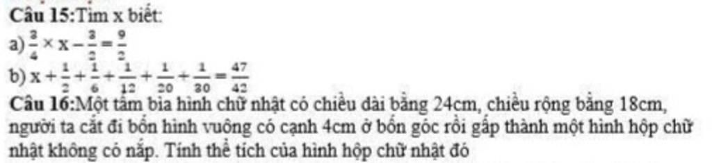 `b) x + 1/2 + 1/6 + 1/12 + 1/20 + 1/30 = 47/42`