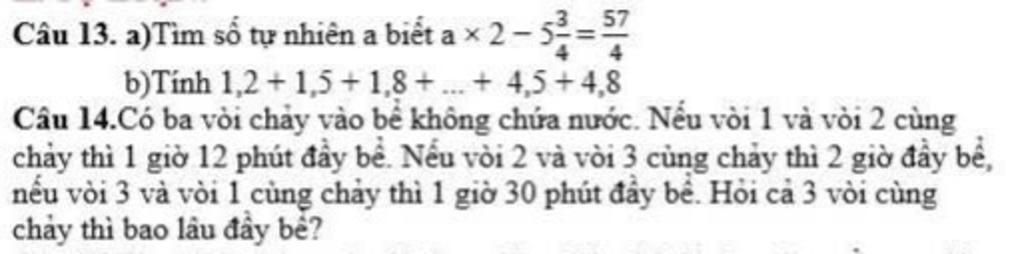 Cả `3` vòi cùng chảy thì sau số thời gian thì đầy bể là: