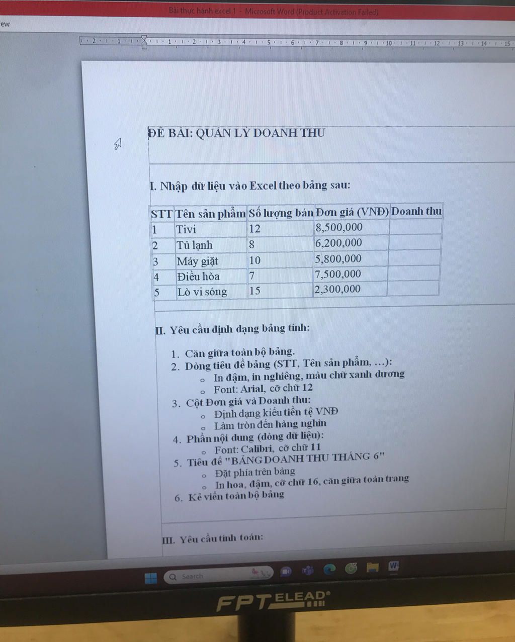 STT|Tên sản phẩm|Số lượng bán|Đơn giá (VNĐ)|Doanh thu