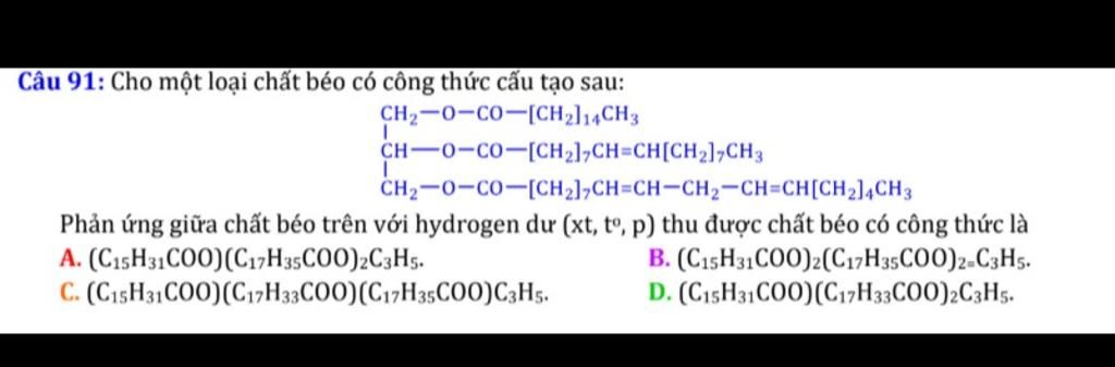 Vậy khi hydrogen hóa hoàn toàn thì sản phẩm thu được chứa: