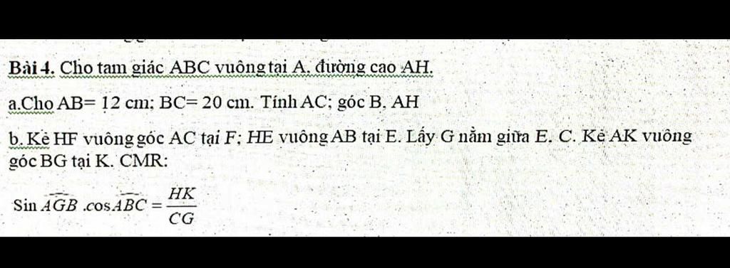 a.Ta có: $\Delta ABC$ vuông tại $A, AH\perp BC$