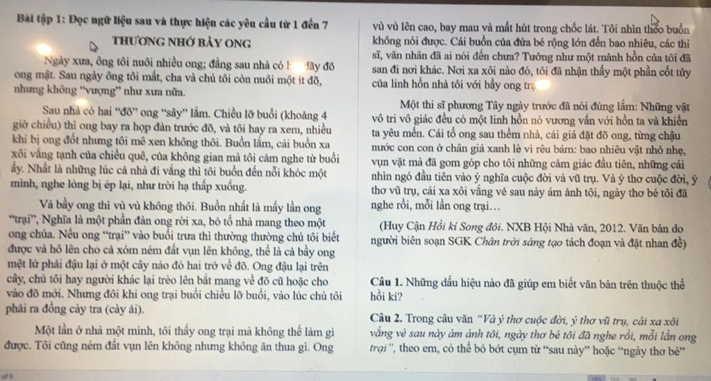 `+` Sử dụng ngôi thứ nhất xưng "tôi" để kể lại chuyện quá khứ