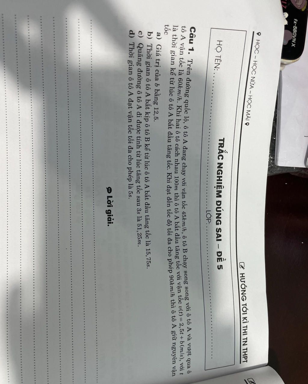 Vậy thời gian oto A bắt kịp B kể từ khi A tăng tốc là $10,75+5 = 15,75s$