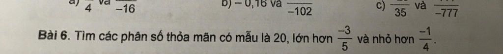 Vậy phân số cần tìm lớn hơn `-12/20` và nhỏ hơn `-5/20`