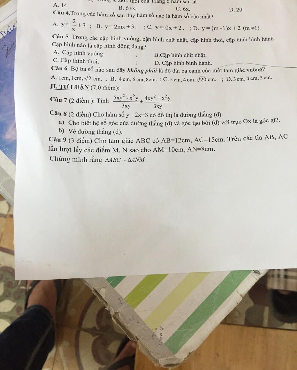 Do đó, `\frac{AM}{AC} = \frac{AN}{AB} = \frac{2}{3}`.