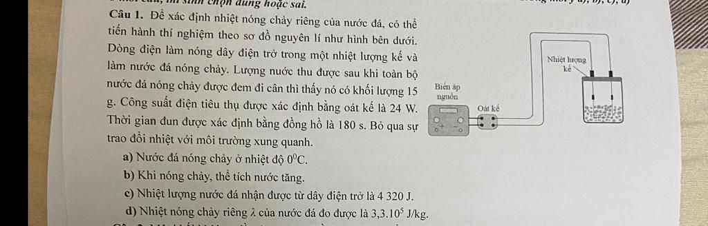 b, Đúng. Khi đá chuyển thành nước `=>` Khối lượng nước tăng `=>` Thể tích nước tăng(Khối lượng tỉ lệ thuận với thể tích).