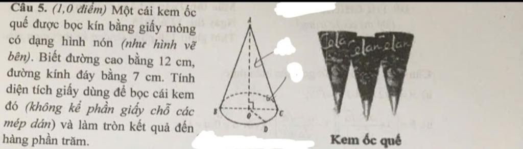 Vậy: diện tích giấy làm chiếc kem là `175,93cm^2`