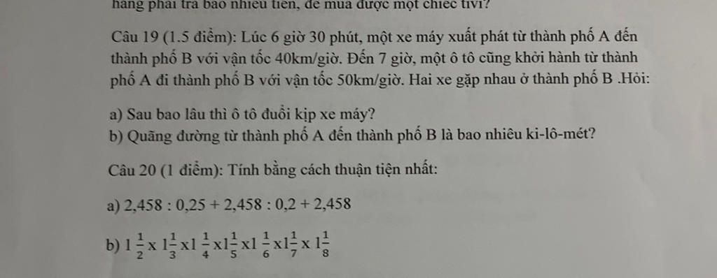 Sau số giờ thì ô tô đuổi kịp xe máy là :