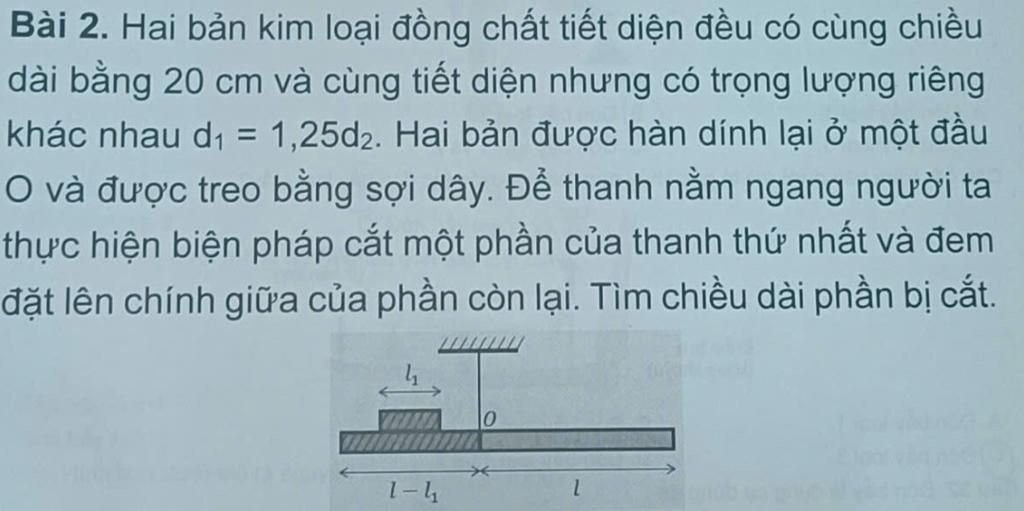 dài bằng 20 cm và cùng tiết diện nhưng có trọng lượng riêng