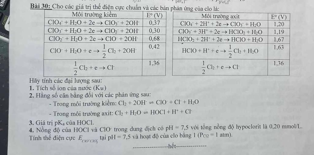 `E_{ClO^-//Cl_2}=0, 42+0, 059.log(([ClO^-])/(p_{Cl_2}^{1/2}.[OH^-]^2))`