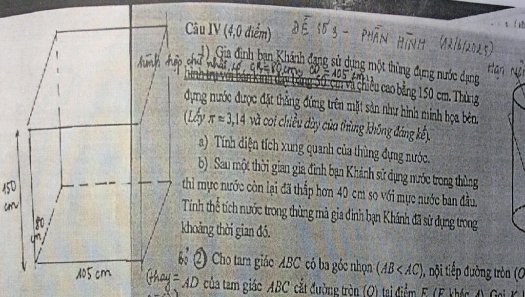 Thể tích nước trong thùng mà gia đình bạn Khánh đã sử dụng là :
