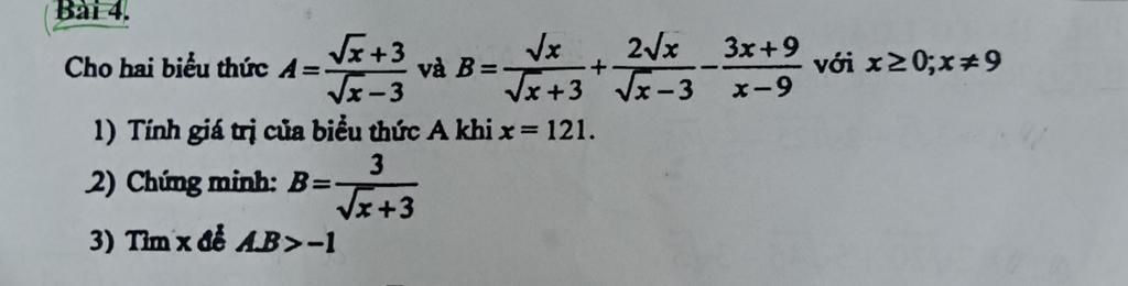 Xét `A . B = (\sqrt{x} + 3)/(\sqrt{x} - 3) . 3/(\sqrt{x} +3)`
