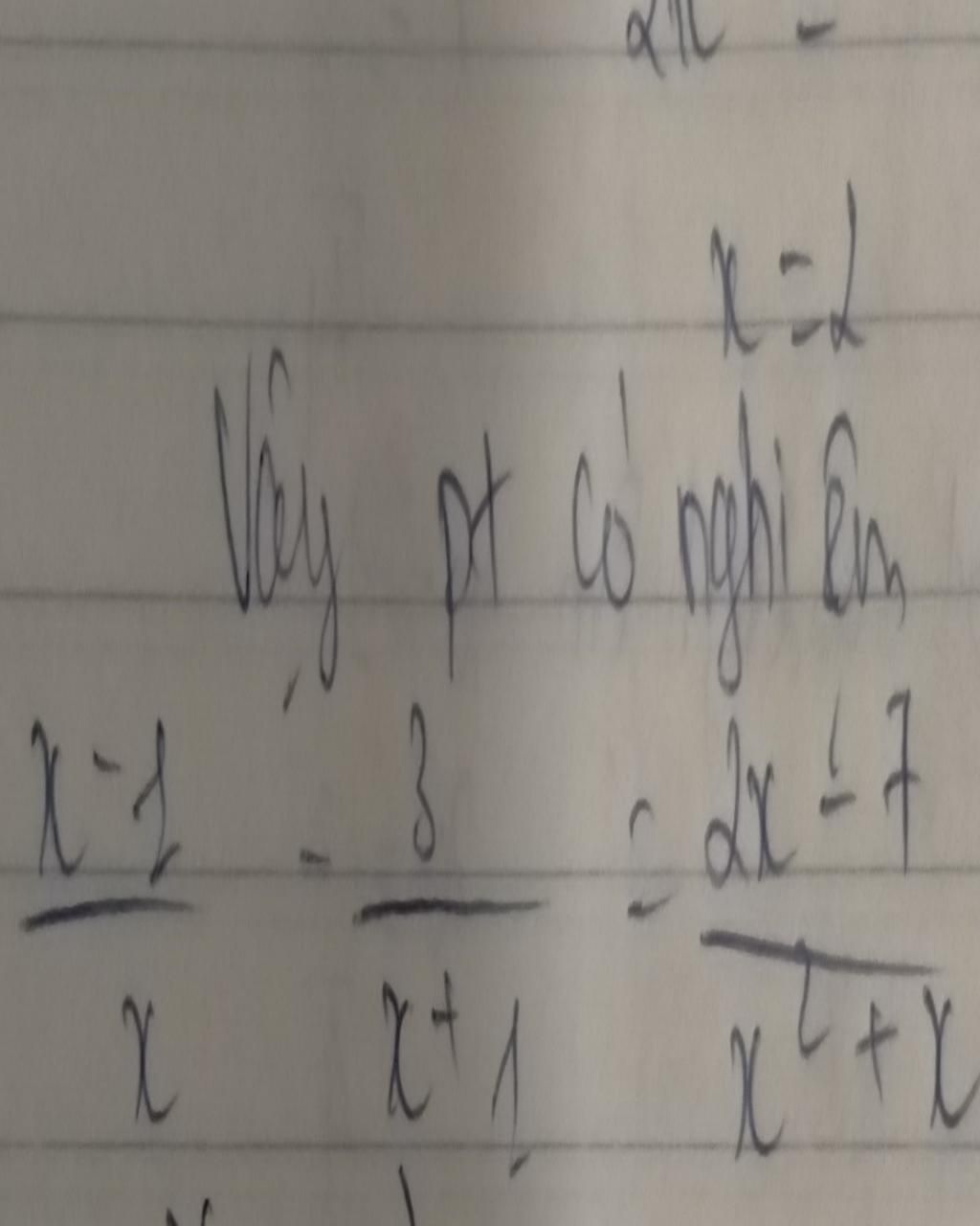 `( x - 1 )/x - 3/( x + 1 ) = ( 2x - 7 )/( x^2 + x ) ( đkxđ: x \ne 0, x \ne - 1 )`
