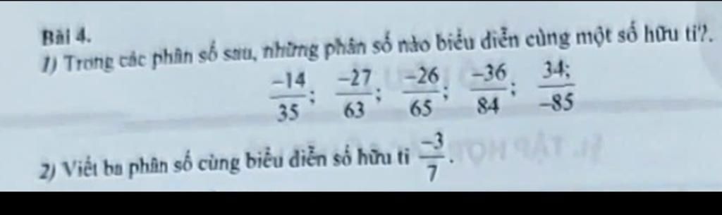 Vậy những phân số biểu diễn cùng `1` số hữu tỉ là: `(-14)/35;(-26)/65;34/(-85)`