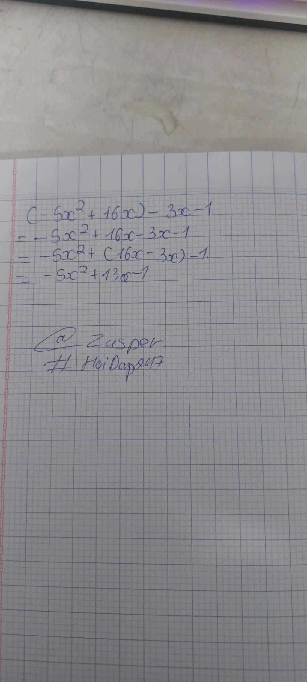 `= - 5x^2 + 16x - 3x - 1 `
