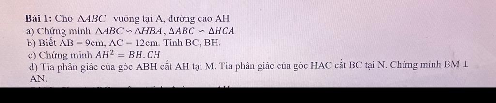Từ t/g ABC đồng dạng HBA -> AB/BH = BC/AB