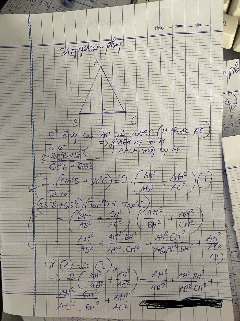 Cho tam giác `ABC` có `hat(B),hat(C)` nhọn có `(sin^2B+sin^2C)/(cos^2B+cos^2C)=(tan^2B+tan^2C)/2`.Chứng minh tam giác `ABC` cân tại `A`