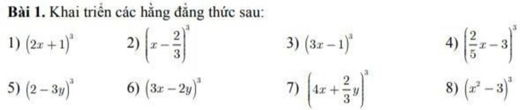 `-` Tất cả các câu trên ta áp dụng hằng đẳng thức :