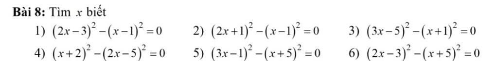 $5) (3x - 1)^2 - (x + 5)^2 = 0$