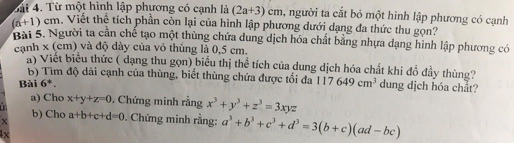 Thể tích phần còn lại của hình lập phương là: