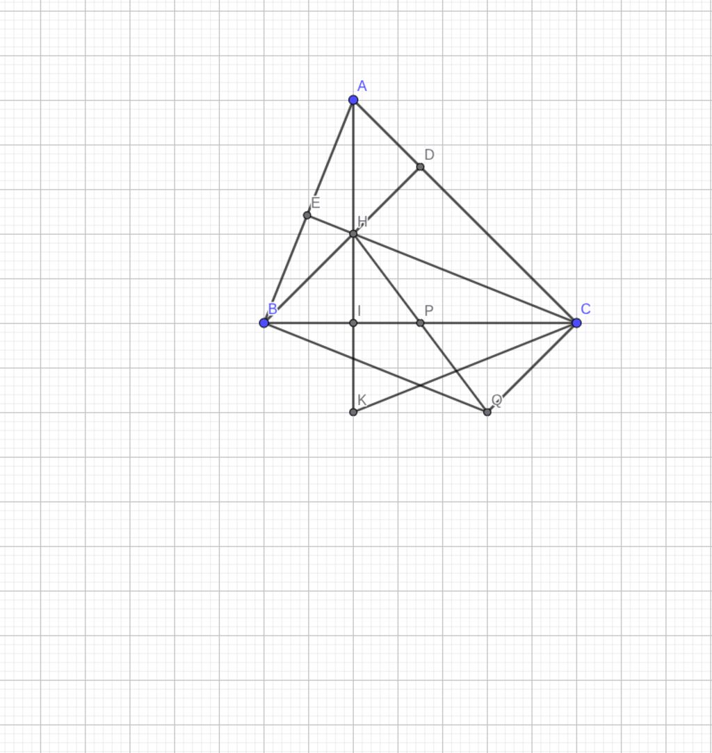Bài 4 cho tam giác ABC nhọn ,các đường cao BD và CE cắt nhau tại H.Gọi P là trung điểm của BC .Lấy điểm Q cao cho P là trung điểm của HQ