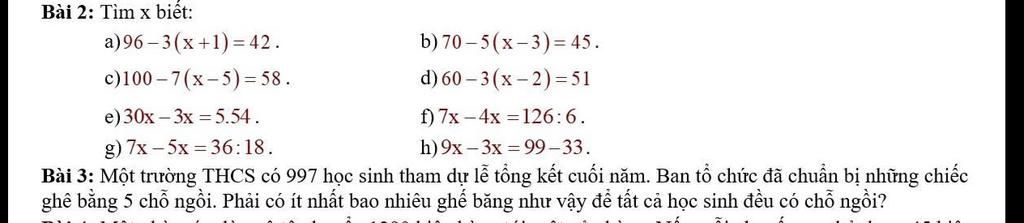 `997` học sinh cần `199` chiếc ghế bằng `5` chỗ ngồi và còn `2` học sinh không có chỗ ngồi