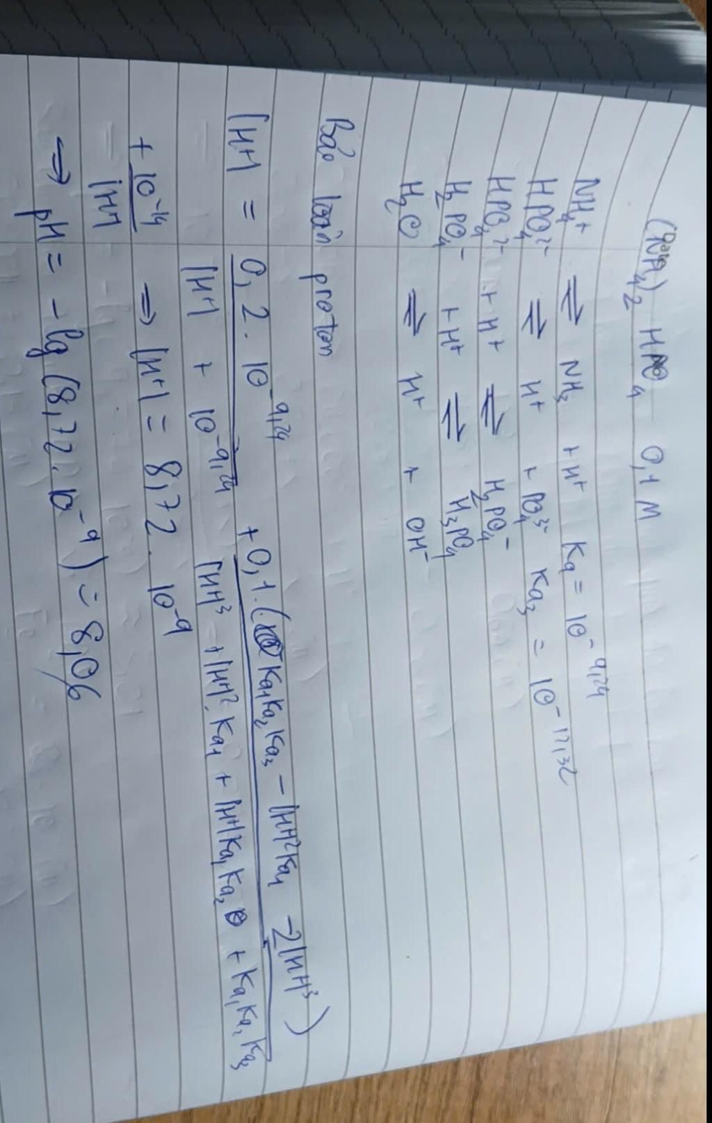 tính pH dung dịch (NH4)2HPO4 0,1M