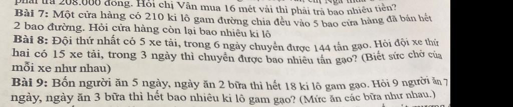 Số kg gạo 9 người ăn trong vòng 7 ngày là :