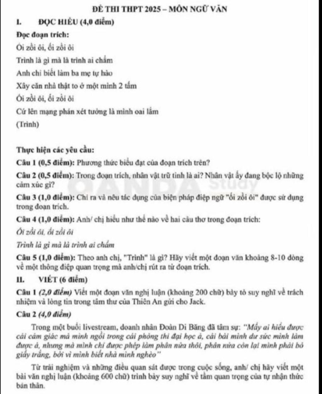 => Theo em, em hiểu rằng tác giả đang đặt ra một câu hỏi mang tính mỉa mai về sự đánh giá năng lực hay trình độ của ai đó. "Trình" ở đây không phải do ai chấm điểm hay công nhận, mà giá trị thật sự phải được thể hiện qua hành động, sự cống hiến, không phải lời nói suông qua mạng xã hội. Qua đó, câu thơ là lời phê phán lối sống khoe khoang, thích đánh giá người khác nhưng lại không tự nhìn nhận chính mình.