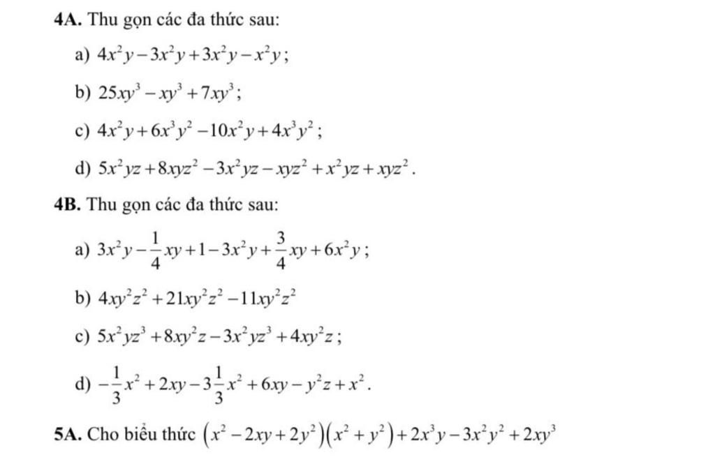 `d)5x^2yz + 8xyz^2 - 3x^2yz - xyz^2 + x^2y + xyz^2`