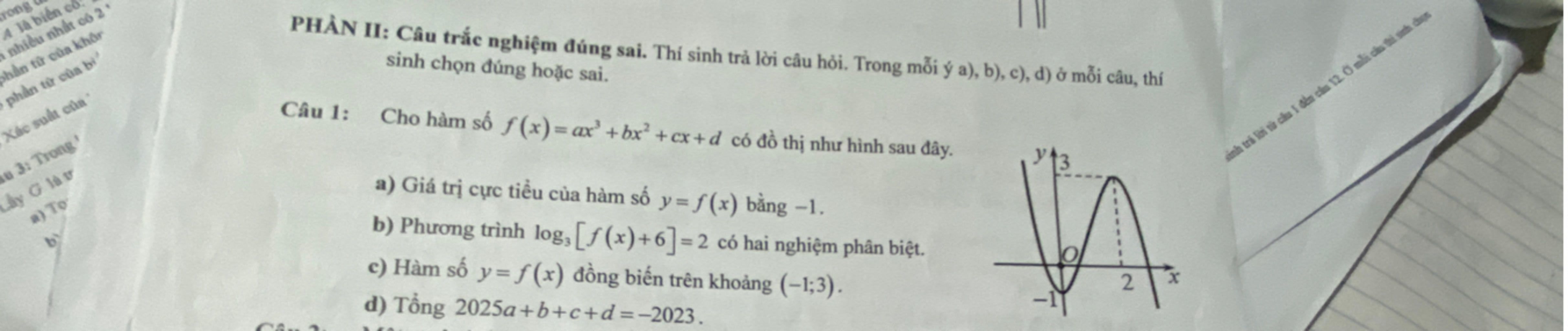 PHẦN II: Câu trắc nghiệm đúng sai. Thí sinh trả lời câu hỏi. Trong mỗi ý a), b), c), d) ở mỗi câu, thí