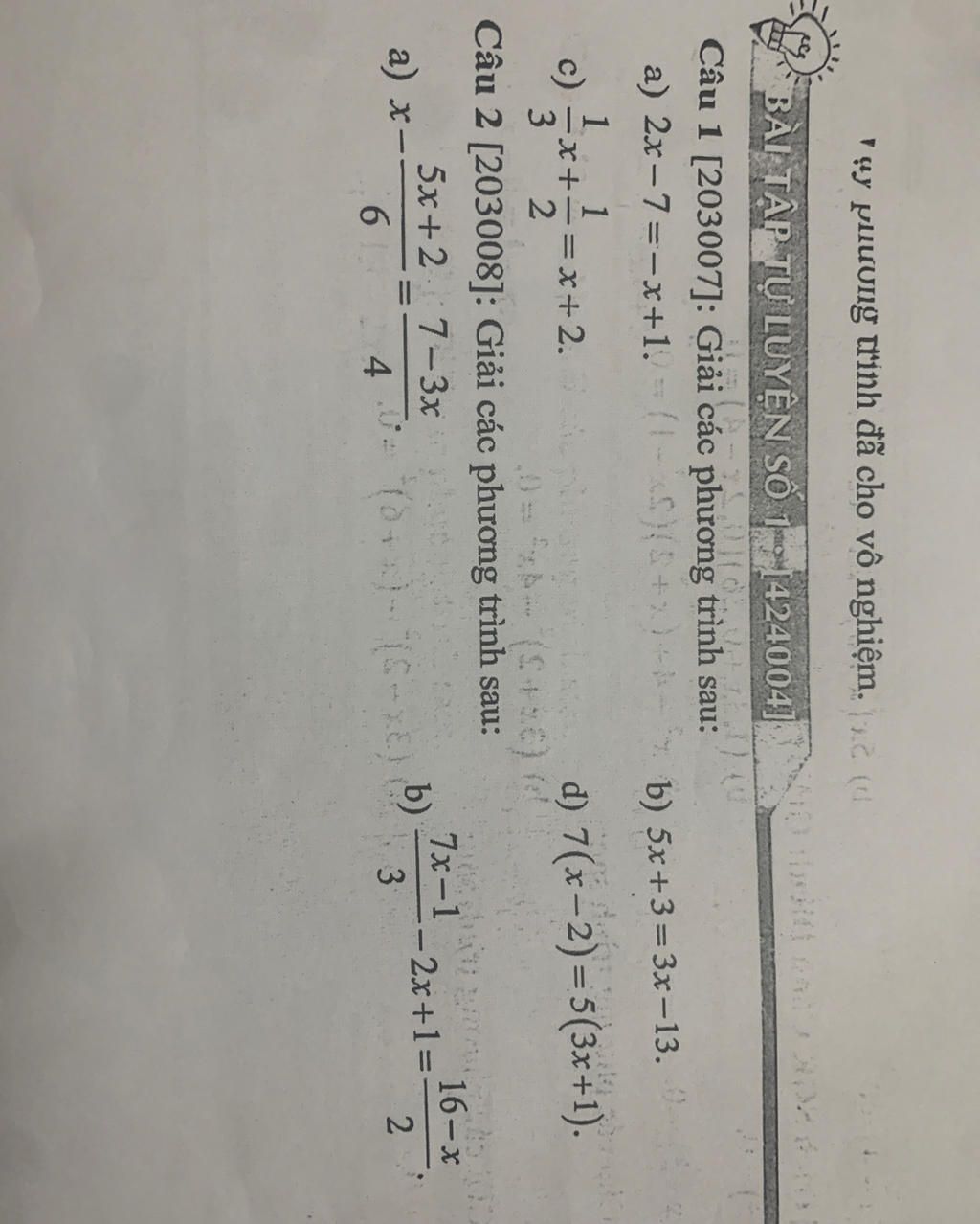 `b, (7x - 1)/3 - 2x + 1= (16 - x)/2`