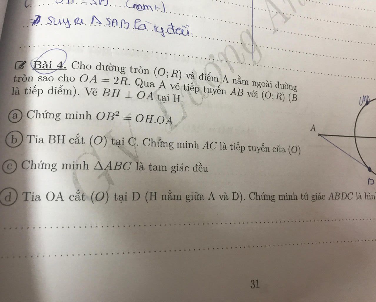 c.Ta có: $AB, AC$ là tiếp tuyến của $(O)$