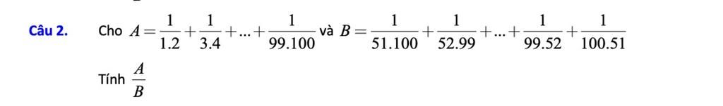 `A/B = (1/51 + 1/52 + ... + 1/100)/(2/151 . ( 1/51 + 1/52 + ... + 1/99 + 1/100 ) )`