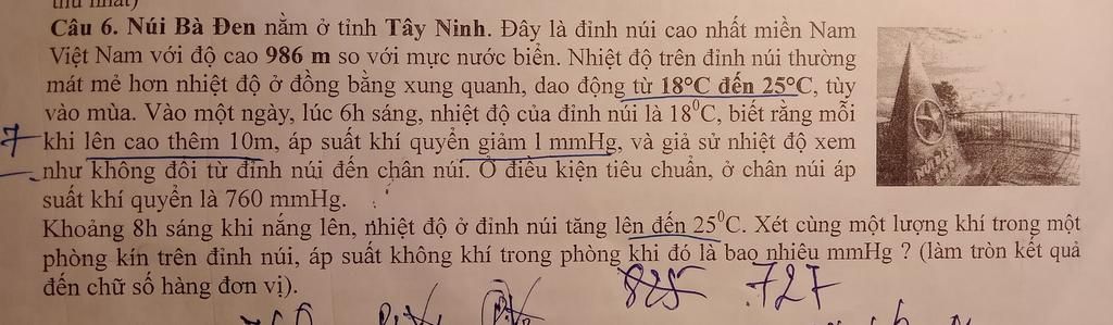 Áp suất khí quyển tại đỉnh núi lúc 6 giờ sáng