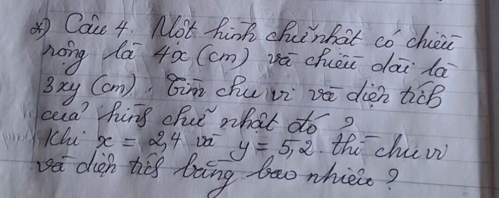 `-` Chiều dài của hình chữ nhật là : `3xy` ( cm )
