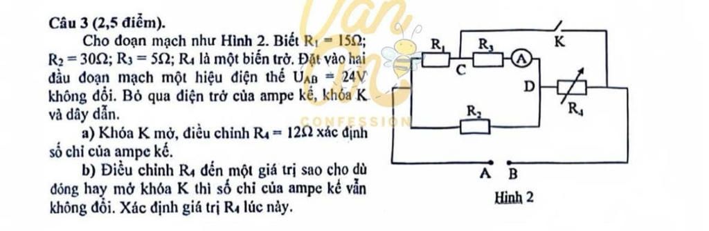 `K` đóng `->` Mạch: `R_1////[R_2 nt (R_3////R_4)]`