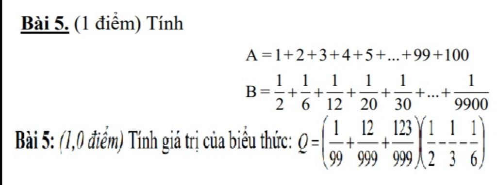 `Q=(1/99+12/999+123/999)(1/2-1/3-1/6)`