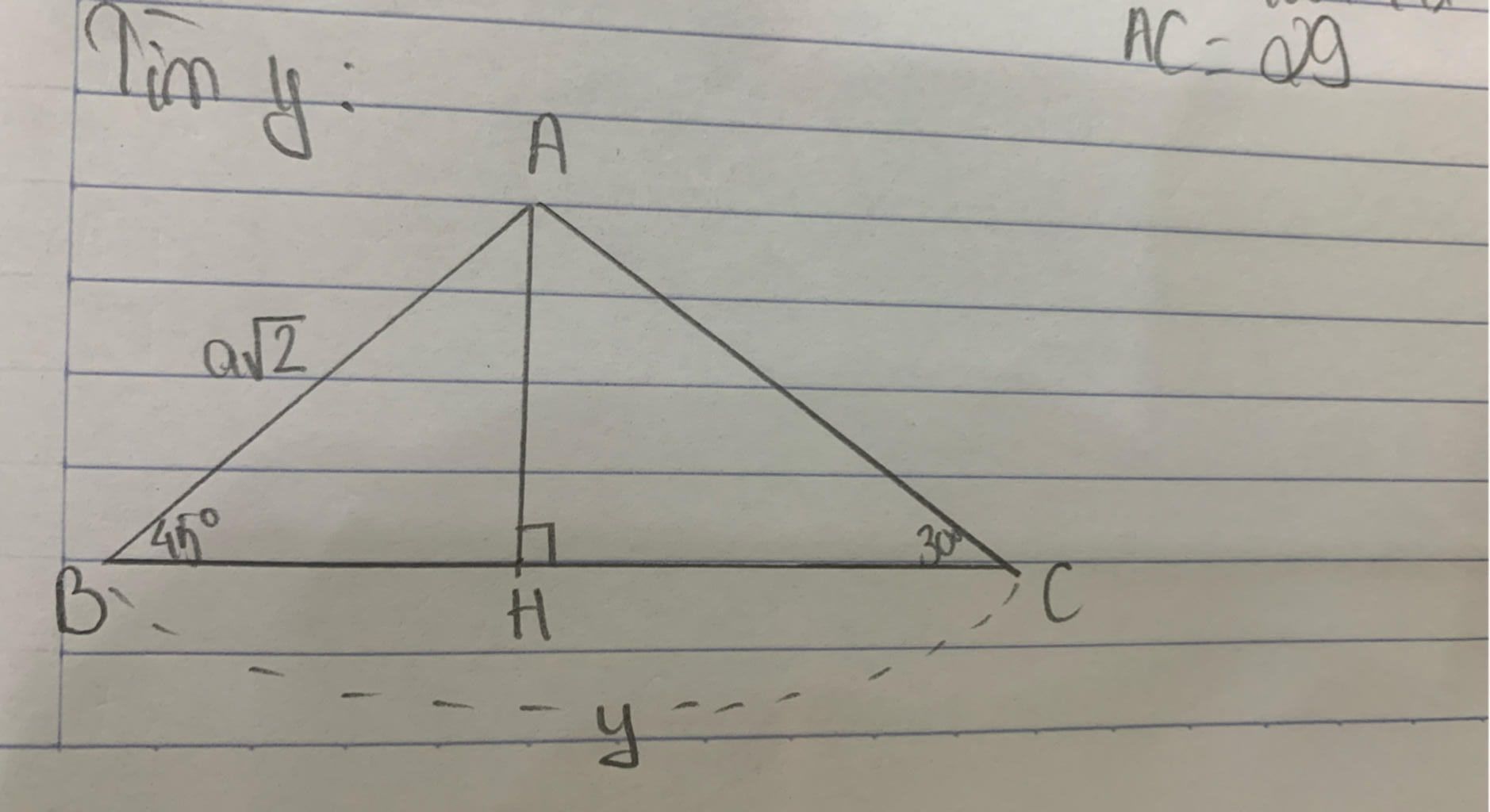 Ta có: `y=BC=BH+CH=a+\sqrt{3}a=(\sqrt{3}+1)a`