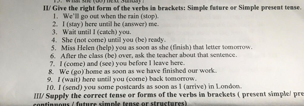 `-` S + V ( Tương lai đơn ) + O + until + S + V ( Hiện tại đơn ) + O : cho đến khi ...