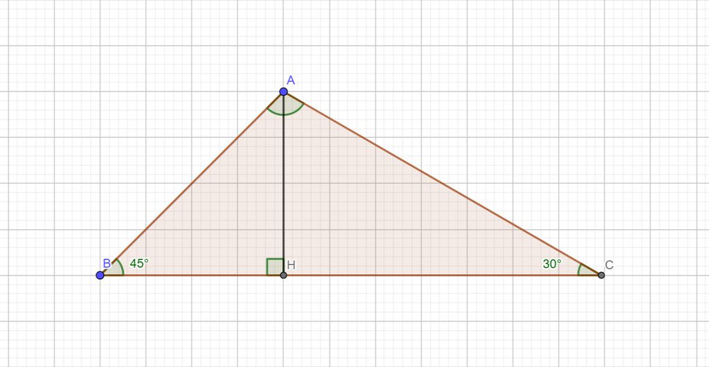 cho tam giác abc, ah là đường cao.góc b bằng 45 độ, ab=a căn 2, góc c=30 độ. tính độ dài bc