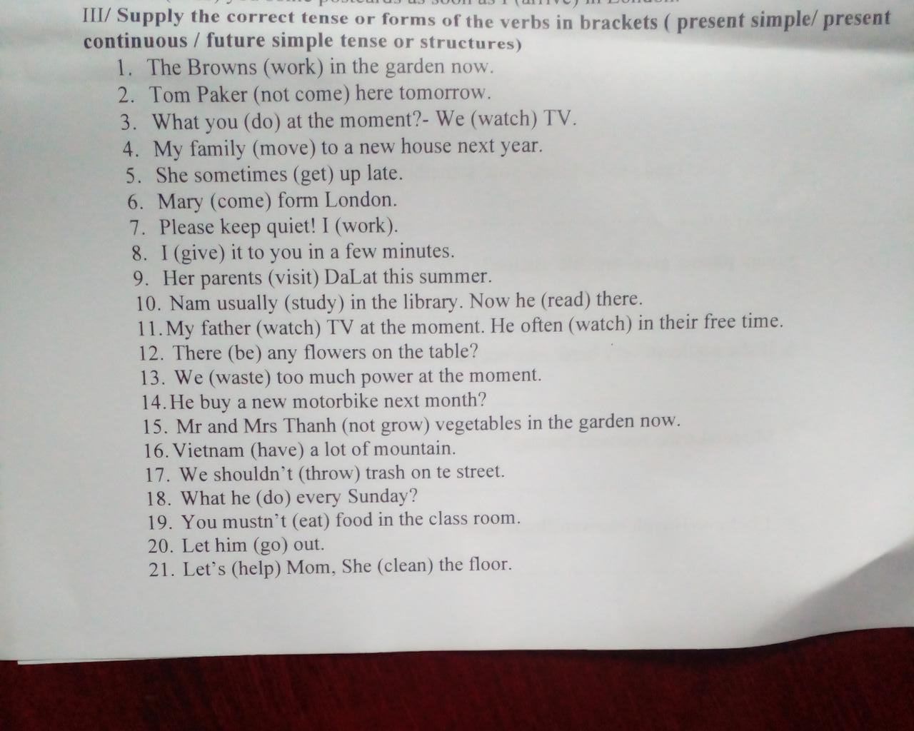 (-) S + don't/doesn't + Vn.m + O.