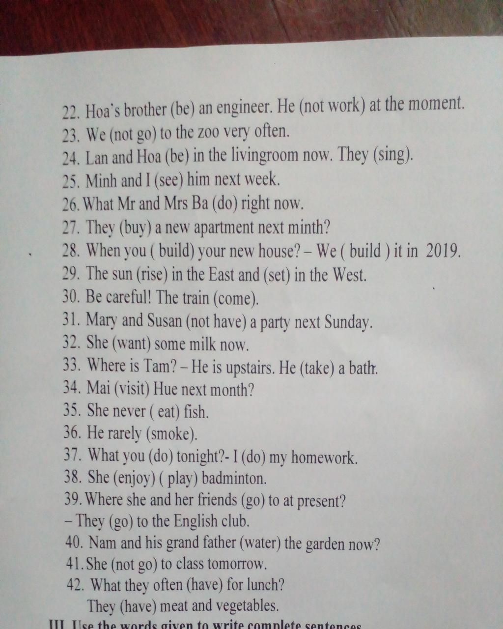 22. Hoa’s brother is an engineer. He is not working at the moment.