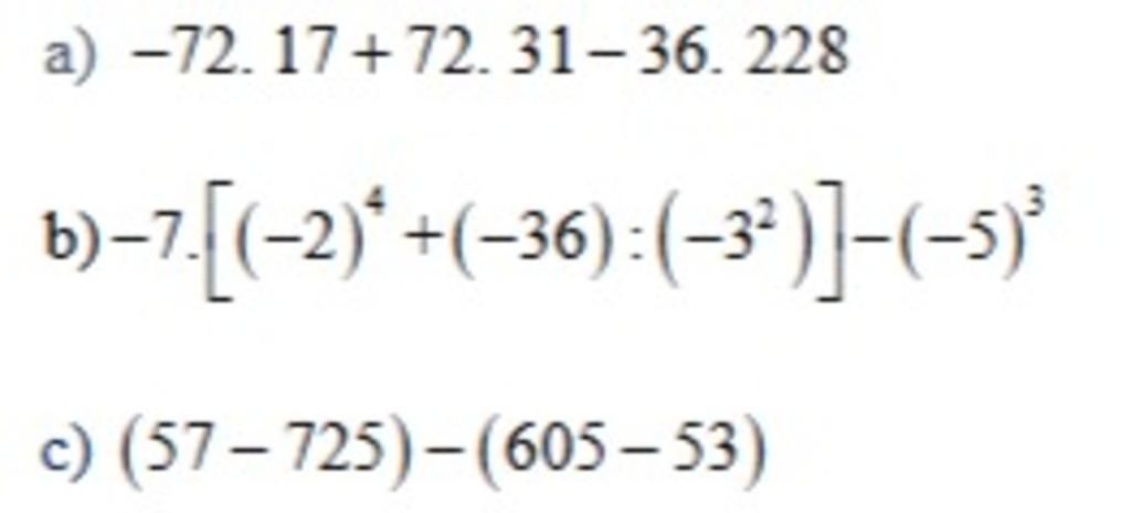 `b) -7. [(- 2) ^ 4 + (- 36) : (- 3 ^ 2)] - (- 5) ^ 3 `