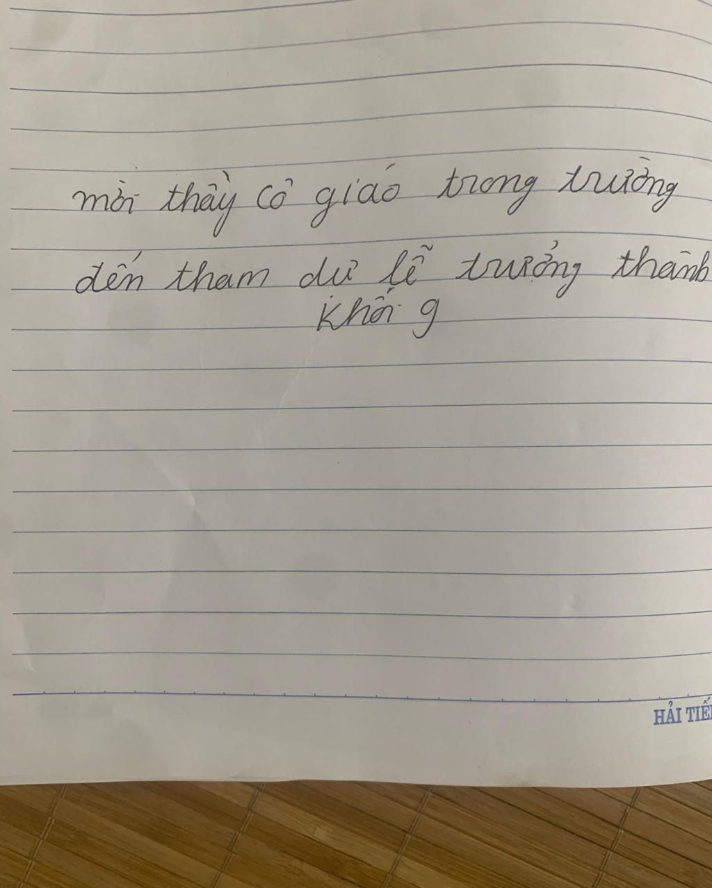 Chúng em trân trọng kính mời Quý Thầy/Cô đến tham dự buổi lễ, để cùng chia sẻ những khoảnh khắc ý nghĩa, lắng nghe những lời tri ân chân thành từ các em học sinh và chứng kiến sự trưởng thành của các thế hệ học trò thân yêu.