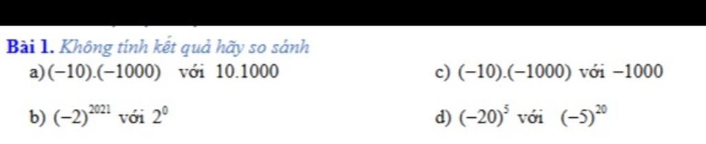 a,khi nhân với 10 ta chỉ cần thêm số 0 và đếm số 0 của cả hai kết quả này ( - 10 ) .(- 1000 ) = 10 . 1000