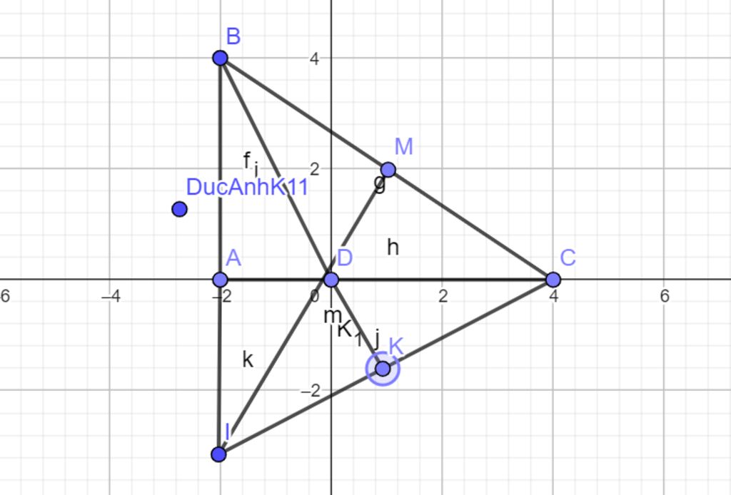 c) Gọi I là giao điểm của AB và CK. Chứng minh AB.BI + AC.DC = BC²